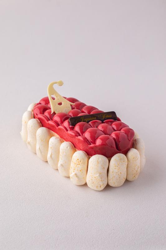 Meringue craquante, sorbet framboise, glace vanille de Madagascar..