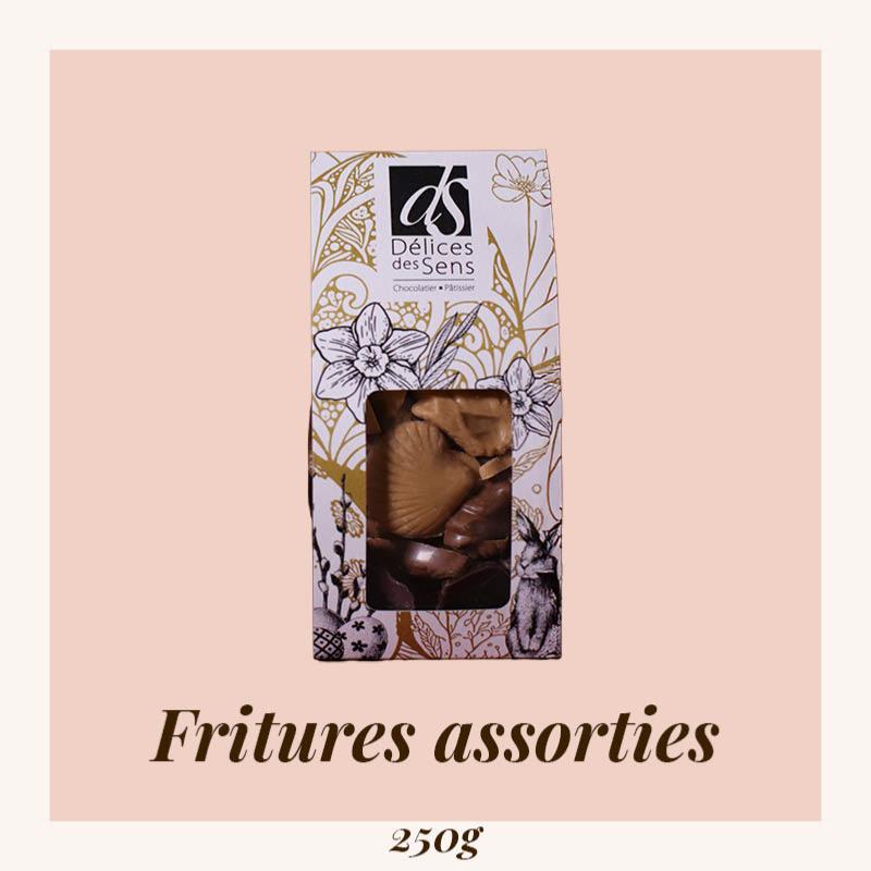 Friture sèche simple non fourrée en chocolat LAIT, NOIR, DULCEY et BLANC