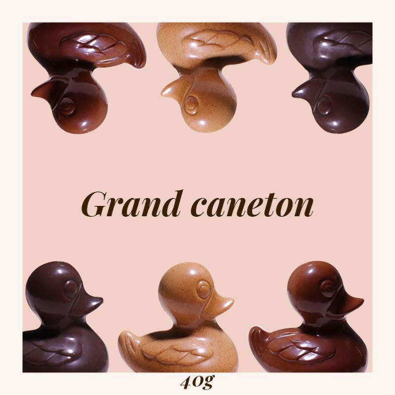Coque en chocolat noir garnie de une friture et trois œufs.