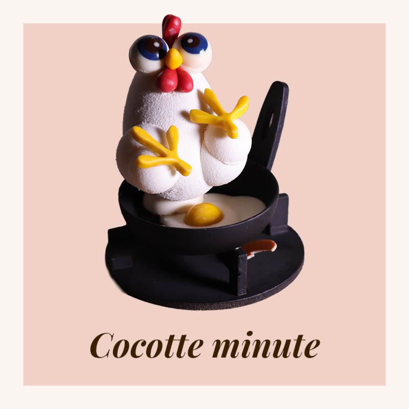 Coque en chocolat noir, lait et blanc, garnie de fritures et d'œufs pralinés assortis.