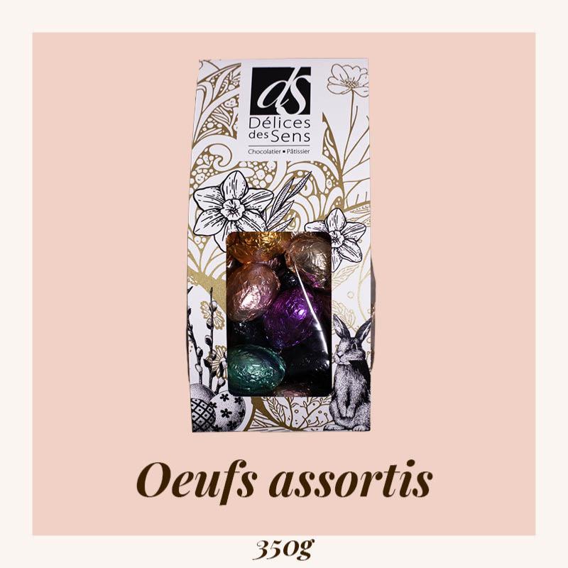 Œufs en chocolat noir ou lait, fourrés pralinés (noisette, amande vanille, Gianduja, amande, coco ,pistache)